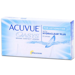 - ACUVUE® OASYS® for Astigmatism 2-Week contact lenses are available 6 lenses per box.